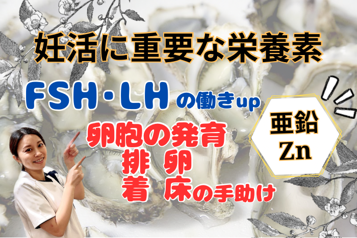 卵胞刺激ホルモン(FSH)や黄体形成ホルモン(LH)の働きを高めたり、亜鉛が不足すると排卵がスムーズに行われなかったりと、排卵や着床に関連する多くのホルモンに亜鉛は必要となるのです。