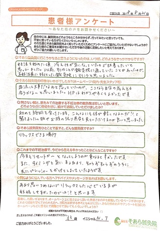 他の先生に施術いただく時も同じ方針でやってくださるので安心して受けられました。
